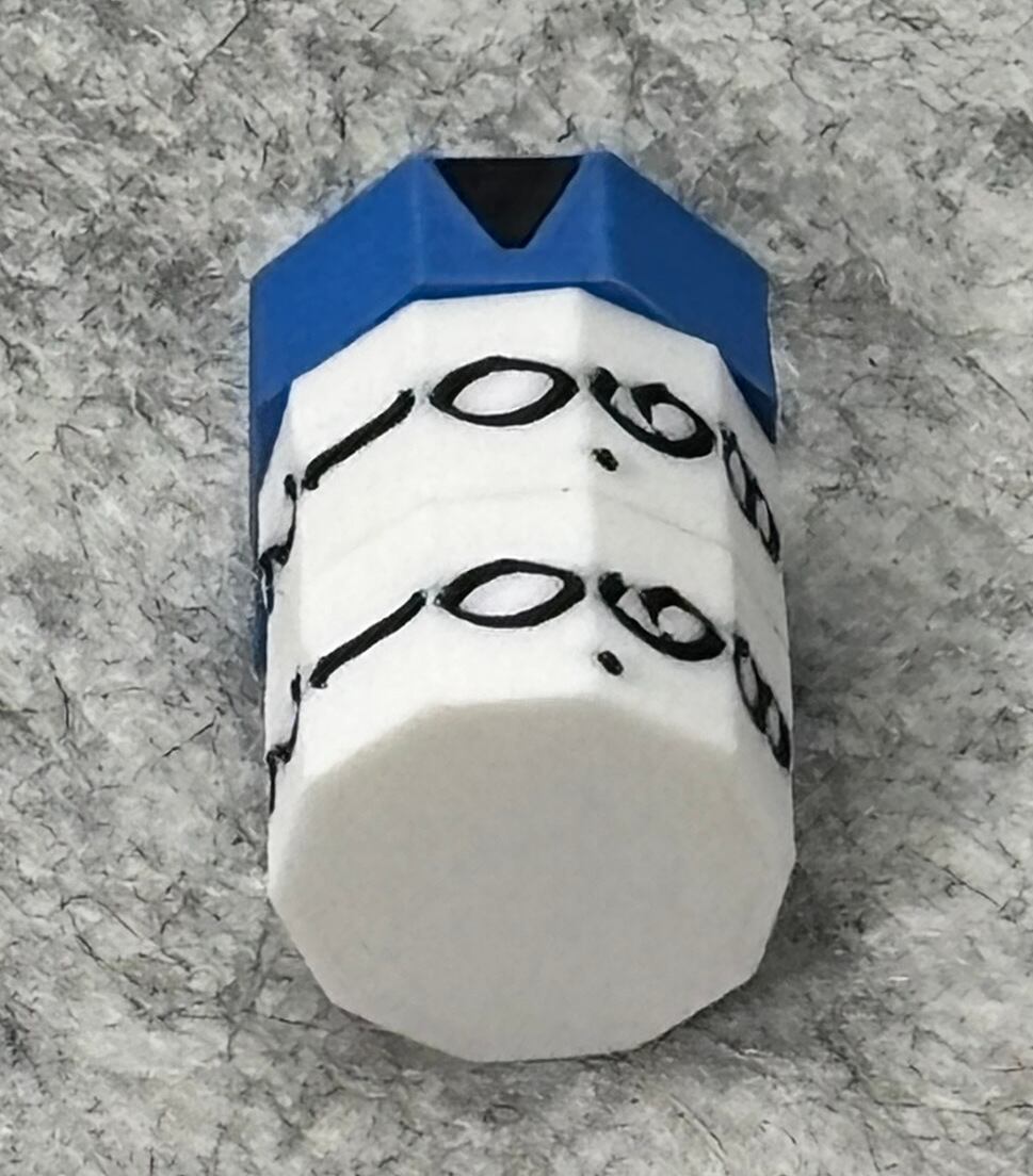 ▼3DプリンターにてPLA樹脂を用いて製作しております。そのため、角が丸く歪んだり、マグネット穴の透け、印刷ヨレといった現象があります。